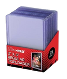 Super clear, regular 3" x 4" Toploader for standard size cards (2-1/2" x 3-1/2"). Rigid plastic encloses card and keeps it clean while preventing damage. Packs of 25.