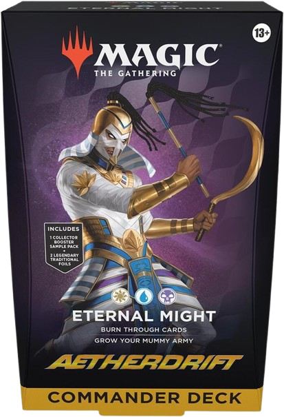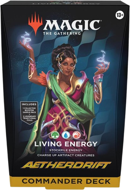 In Commander, four players come together to show their strength and strategy, with one player coming out on top. Each 100-card ready-to-playAetherdriftCommander Deck makes it easy for Commander fans in your store to grab a deck and play right away.