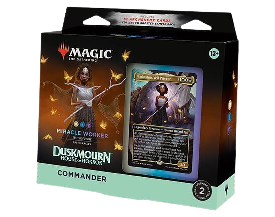 In Commander, four players come together to show their strength and strategy, with one player coming out on top. Each 100-card ready-to-playDuskmourn: House of HorrorCommander Deck makes it easy for Commander fans in your store to grab a deck and play right away.
