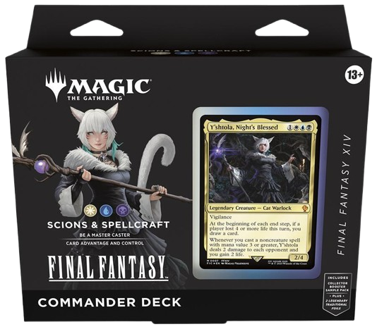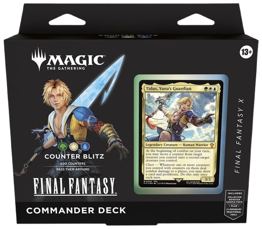 In Commander, four players come together to show their strength and strategy, with one player coming out on top. Each 100-card ready-to-play Magic: The Gathering®—FINAL FANTASY Commander Deck makes it easy for Commander fans in your store to grab a deck and play right away.