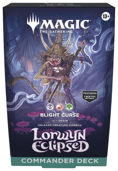 Commander decks are ready to play right out of the box and contain everything you need to play Magic's most popular multiplayer format. Lorwyn Eclipsed features two different Commander deck versions.