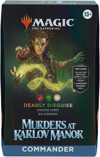 In Commander, four players come together to show their strength and strategy, with one player coming out on top. Each 100-card ready-to-play Murders at Karlov Manor Commander Deck makes it easy for Commander fans in your store to grab a deck and play right away.